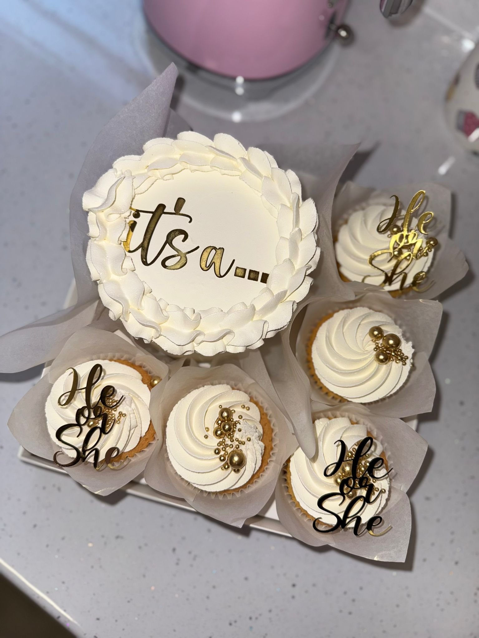 The perfect mini celebration! A 5” themed bento cake with matching cupcakes, personalised and finished with edible or card toppers for maximum impact.